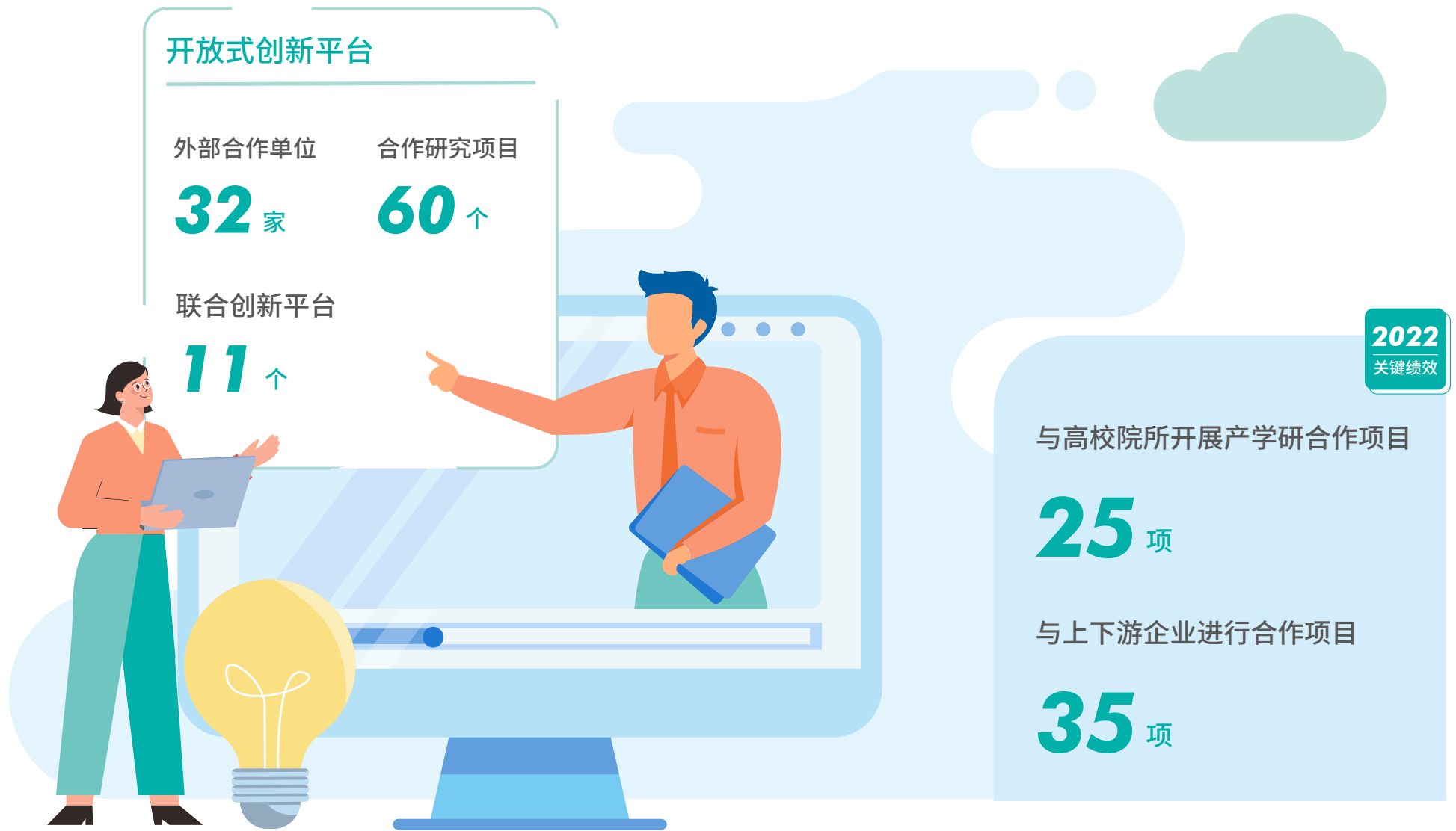 中化国际围绕产业链构建开放式创新机制,积极与行业优秀企业、上下游企业、高校院所等伙伴开展交流合作,整合多方优势资源,推动研究平台建设、创新项目开展、关键技术攻关,通过产学研、研产销等合作模式推动化工行业进步。