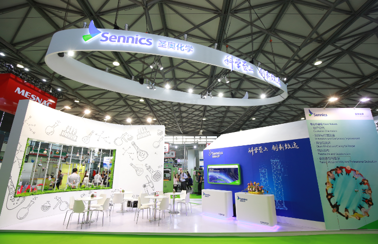 本次展览中,圣奥化学展台设计以“奇妙的圣奥实验室”为主题,展现了在当前国际经济形势日益严峻的背景下,公司紧紧围绕中化集团“全面转型为科学技术驱动的创新型公司”的发展战略,以科技领先、清洁环保为方向,在研发应用、工艺技术等方面不断创新,从源头上研发安全环保、环境友好的本质绿色产品,同时也体现了圣奥携手行业伙伴一起打造绿色供应链,共同推动整个行业的绿色可持续发展,更好满足客户需求和社会期待的决心。