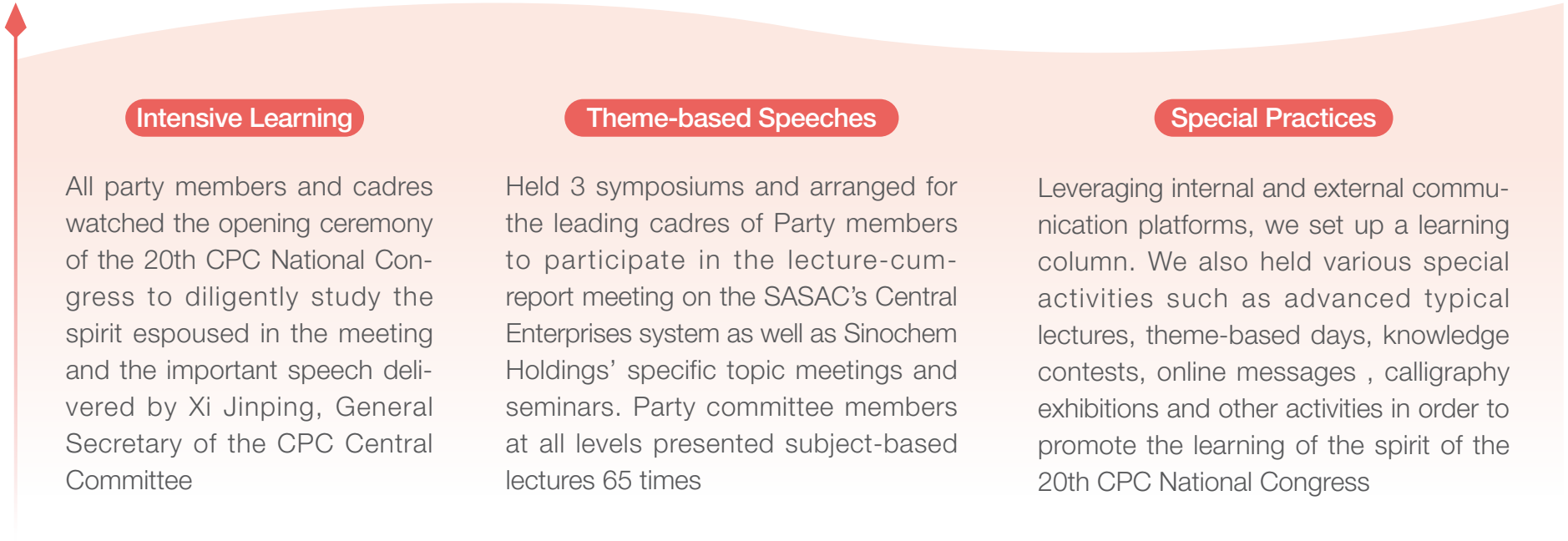The 20th CPC National Congress provides the way forward and establishes the fundamental rules for the high-quality development of enterprises in this new era and new journey. Guided by “Xi Jinping Thoughts on Socialism with Chinese Characteristics for a New Era”, Sinochem International has embarked on the diligent learning and comprehensive implementation of the spirit of the 20th CPC National Congress, and practically implemented the 20th CPC National Congress key strategies in its various management and operations related tasks, unswervingly keep forging ahead on the road to becoming the “leading enterprise of innovative new chemical materials”.