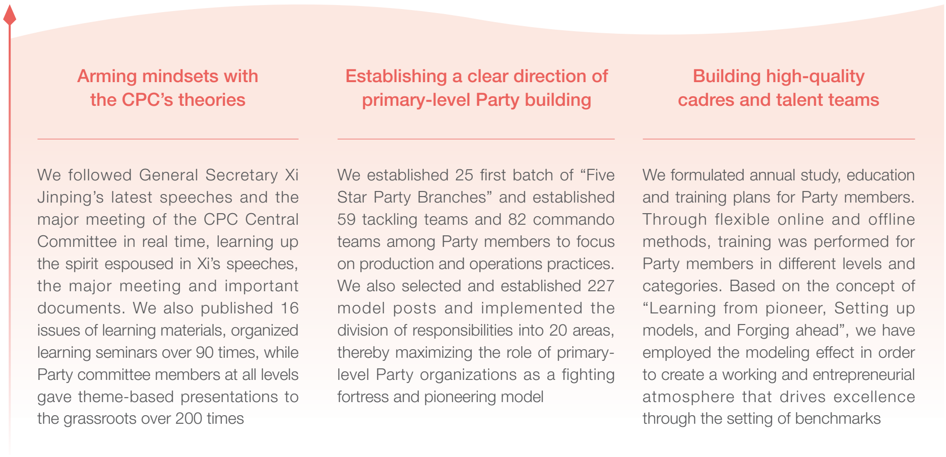 Sinochem International effectively integrates the CPC’s leadership with corporate governance. As it implements the CPC’s new era organizational path and fortifies the CPC’s organizational system, the company builds high-quality cadres and talent teams to drive the enterprise’s high-quality development through high-quality Party building initiatives.